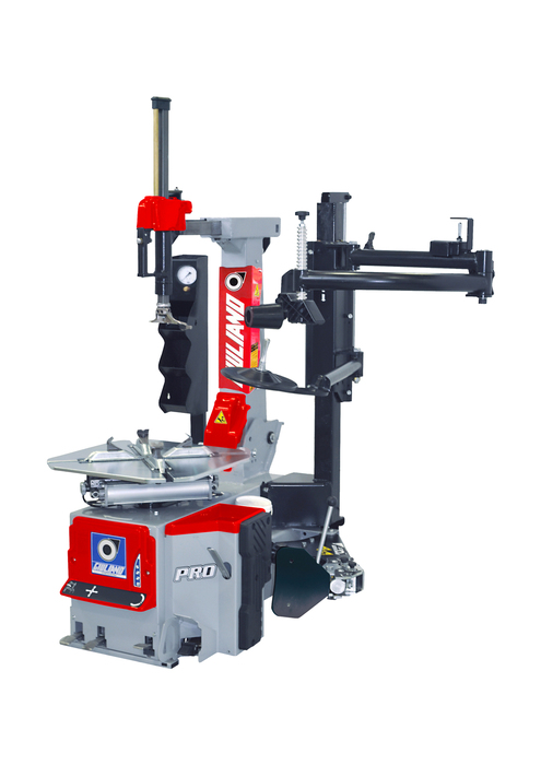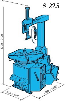 Montážní stroj pro kola osobních a lehkých užitkových automobilů s odklopným zadním ramenem a pomocným ramenem